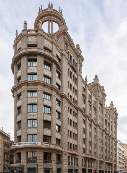 El Edificio se encuentra en la esquina de la Vía Laietana, 16-18 y la calle de la Argentería, 2-4 de Barcelona estando catalogado como BIEN con elementos de interés (categoría C).