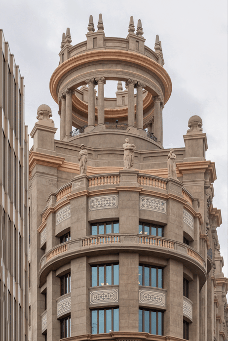 ENVOLVENTE EXTERIOR: Dentro de este periodo 2021-2024 se ha realizado la licitación y trabajo de restauración completa de las fachadas del edificio, con el retiro de equipos de climatización y otros elementos no originales y no aceptados por protección del patrimonio.