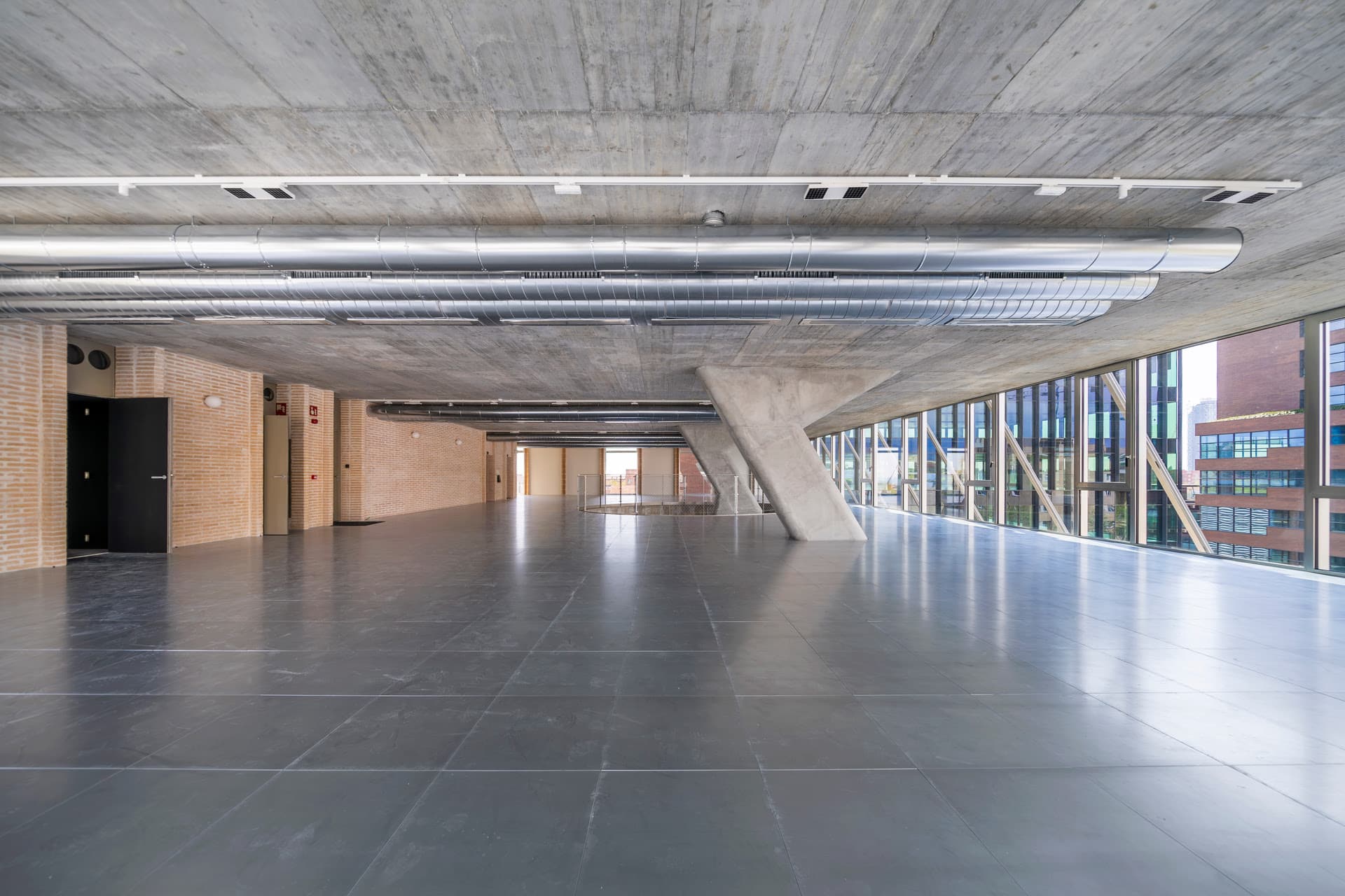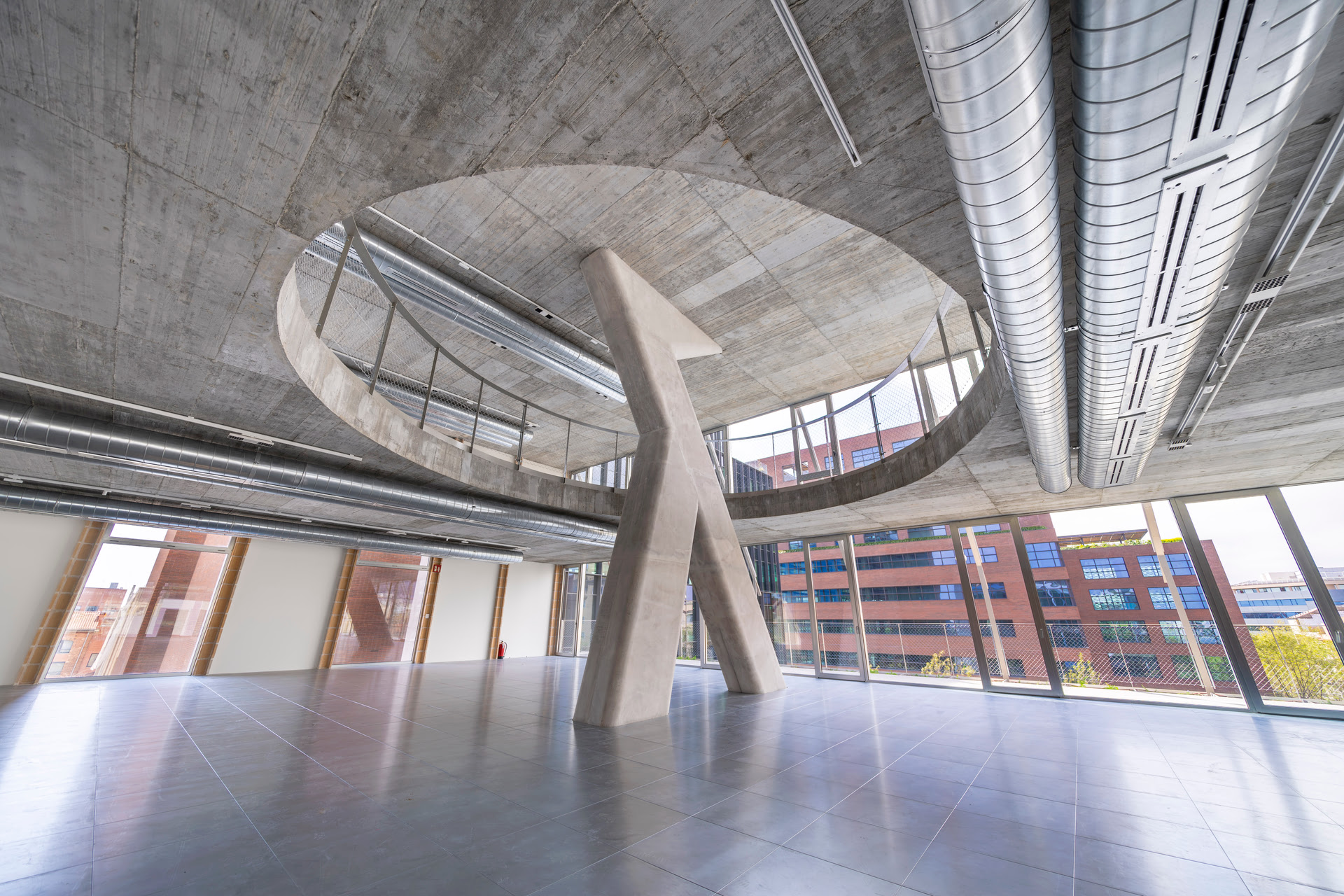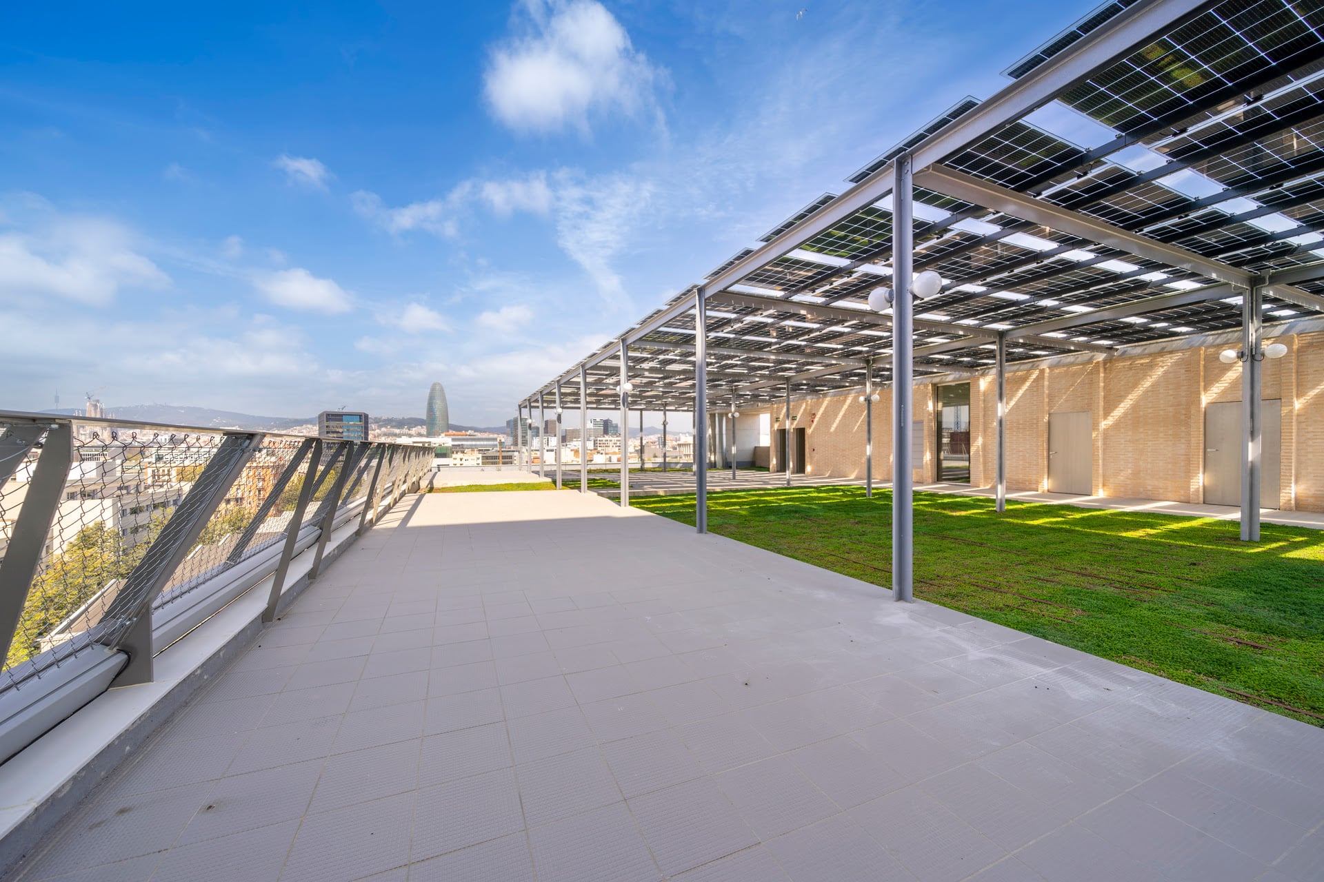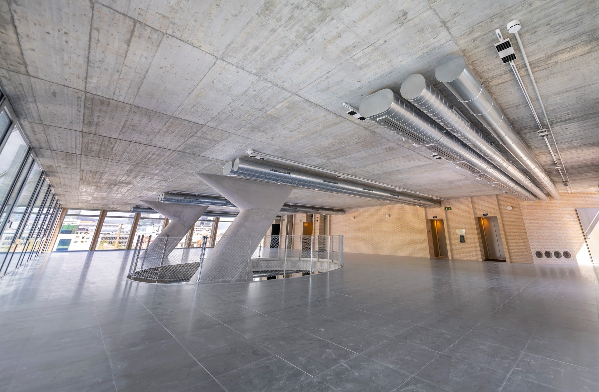Las soluciones implementadas incluyen sistemas de climatización de alta eficiencia, ventilación natural automatizada, gestión energética inteligente con monitorización en tiempo real y aprovechamiento de la inercia térmica del hormigón. Además, se incorporaron protecciones solares y control lumínico para optimizar el confort y reducir el consumo energético.